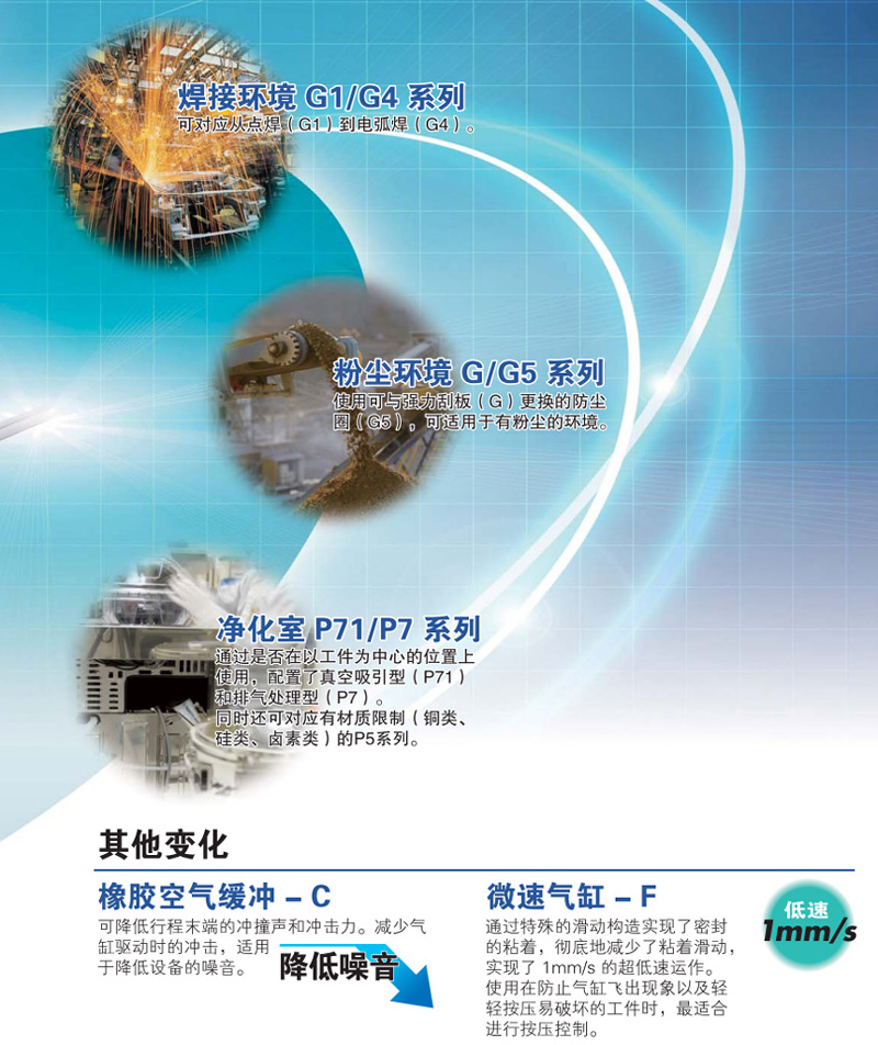 | SSD2-F | 雙作用?微速型 | Φ12, Φ16, Φ20, Φ25, Φ32, Φ40, Φ50, Φ63, Φ80, Φ100 |