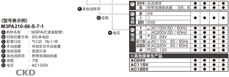 機(jī)種型號(hào):3PA2,底板配管,2位單控,3通電磁閥