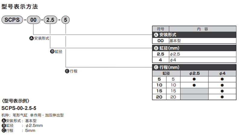 筆形氣缸 單作用·加壓伸出型 / 單作用·加壓縮回型 SCPS、SCPS3、SCPS3L(帶開關)、SCPH3、SCPH3L(帶開關)