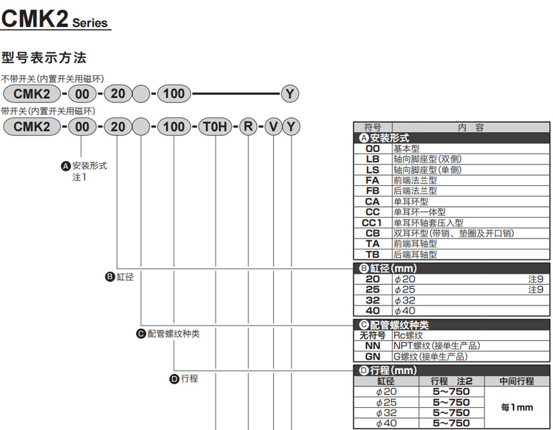 產品信息規格介紹命名規則產品圖紙相關產品資料下載【產品種類豐富】缸筒采用不銹鋼材料的圓型通用氣缸。產品種類、選擇項豐富,適用于多種用途。種類型號 JIS符號缸徑 (mm)標準行程(mm)最小行程(mm)最大行程(mm)中間行程(每mm)基本型軸向腳座型雙側25507510015020025030000LB雙作用型CMK2φ20·φ25·φ32·φ40●●●●●●●●57501●●單作用 ·加壓伸出型CMK2-Sφ20·φ25●●●●●53001●●φ32·φ40●●●●●●300●●單作用 ·加壓縮回型CMK2-SRφ20·φ25●●●●●53001●●φ32·φ40●●●●●300●●雙作用 ·伸出行程可調型CMK2-Pφ20·φ25●●●●●●●●254501●●φ32●●●●●●●●430●●φ40●●●●●●●●400●●雙作用 ·縮回行程可調型CMK2-Rφ20·φ25·φ32·φ40●●●●●●●●257501●●雙作用 ·耐熱型CMK2-Tφ20·φ25·φ32·φ40●●●●●●●●57501●●雙作用帶橡膠氣緩沖CMK2- ※Cφ20·φ25·φ32·φ40●●●●●●●●57501●●雙作用氣緩沖型CMK2-Cφ20·φ25·φ32·φ40●●●●●●●●57501●●雙作用 ·防墜落型CMK2-Qφ20·φ25·φ32·φ40●●●●●●●●57501●●雙作用 ·微速型CMK2-Fφ20·φ25·φ32·φ40●●●●●●●●57501●●雙作用 ·雙活塞桿型CMK2-Dφ20·φ25●●●●●●●●55001●●φ32●●●●●●●●480●●φ40●●●●●●●●450●●雙作用 ·背靠背型CMK2-Bφ20·φ25·φ32·φ40●●●●●●●●57501●●雙作用 ·防回轉型CMK2-Mφ20·φ25·φ32·φ40●●●●●●●●57501●●雙作用調速閥內置型CMK2-Zφ20·φ25·φ32·φ40●●●●●●●●57501●●雙作用 ·低油壓型CMK2-Hφ20·φ25·φ32·φ40●●●●●●●●57501●●雙作用 ·耐切削油型MK2-G2 ·G3φ20·φ25·φ32·φ40●●●●●●●●57501●●●標準、◎:準標準、○:接單生產、*:不可制作 安裝形式選擇項附件開關記載貢碼軸向腳座型單側前端法蘭型后端法蘭型單耳環型單耳環一體型單耳環軸套壓入型雙耳環型前端耳軸型后端耳軸型隙秦oc)隙 奏 250 ℃帶快插接頭直管帶快插接頭彎晉活寨桿材質變更凸臺去除型防紫色化單耳環連接件雙耳環連接件雙耳環支撐件LSFAFBCACCCC1CBTATBJLFFEMVP61YB2●●●●●●●●●◎◎◎◎◎◎◎◎◎◎◎84●●●●●●●●●◎◎◎◎◎◎◎◎◎◎◎98●●●●●●●●●◎◎◎◎◎◎◎◎◎◎●●●●●●●●●◎◎◎◎◎◎◎◎◎◎◎104●●●●●●●●●◎◎◎◎◎◎◎◎◎◎●●●****●●◎◎◎◎◎*◎◎◎◎◎110●●●****●●◎◎◎◎◎*◎◎◎◎●●●****●●◎◎◎◎◎*◎◎◎◎●●●****●●◎◎◎◎◎*◎◎◎◎116●●●●●●●●●*◎**◎◎*◎◎◎*122●●●●●●●●●◎◎◎◎◎◎○○○○○126●●●●●●●●●◎◎◎◎◎◎*◎◎◎◎134●●●●○○●●●**◎◎◎○◎◎◎◎◎140●●●●●●●●●****◎*◎◎◎◎146●●*****●*◎◎◎◎◎*◎◎◎◎◎150●●*****●*◎◎◎◎◎*◎◎◎◎●●*****●*◎◎◎◎◎*◎◎◎◎*●*******◎◎◎◎◎*◎◎◎◎◎156●●●●●●●●●◎◎◎◎◎◎*◎◎◎◎162●●●●●●●●●◎◎◎◎◎◎○◎◎◎◎168●●●●●●●●●◎◎**◎◎◎◎◎◎◎174●●●●●●●●●**○○***◎◎◎◎178注1:帶前地防坐落時可以選擇。注2:幫后端防墜落時可以選擇。注3:G2時可以選擇。CKD規格項目CMK2缸徑 mmφ20φ25φ32φ40動作方式雙作用型使用流體壓縮空氣最高使用壓力 MPa1.0最低使用壓力 MPa0.1耐壓力 MPa1.6環境溫度 ℃-10~60(但是,不得凍結)配管口徑Rc1/8行程允許誤差 mm8°(~200)、%“(超過200~)使用活塞速度 mm/S50~500緩沖橡膠緩沖給油無需(給油時請使用透平油1種ISO VG32)允許吸收能量 J0.1660.3080.4240.639 圖紙資料請聯系在線客服,或電聯我們微信客服 CKD緊固型氣缸CMK2-S單作用 加壓伸出型品名:CKD緊固型氣缸 單作用 加壓伸出型 系列:CMK2-S Series 缸徑:φ20·φ25·φ32·φ40 微信客服 CKD緊固型氣缸CMK2 雙作用 單活塞桿型品名:CKD緊固型氣缸雙作用 單活塞桿型 系列:CMK2 Series 缸徑:φ20·φ25·φ32·φ40 微信客服查看所有相關資料請聯系在線客服,或電聯我們微信客服 標簽:CKDCKD氣缸CKD緊固型氣缸 上一篇: CKD筆形氣缸SCPD3-O 雙作用 低速型 下一篇: CKD緊固型氣缸CMK2-S單作用 加壓伸出型