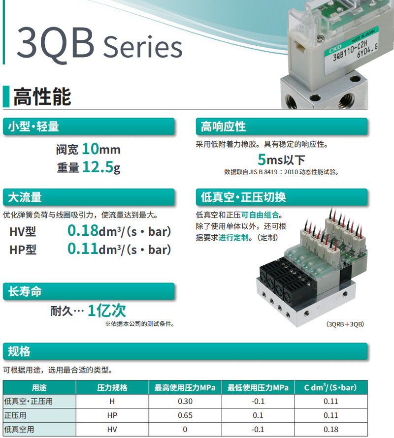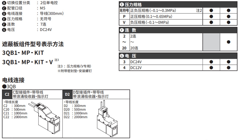 直動式3通閥 單體閥?底板配管 3QB Series 個別配線集成閥?底板配管 M3QB Series 適用缸徑:φ6~φ20 微信客服