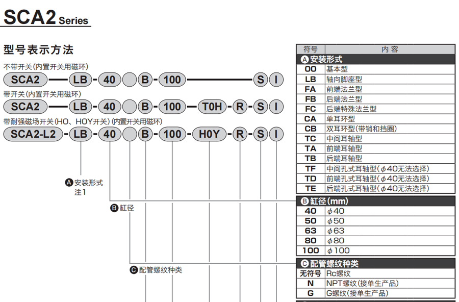 種類名稱? ? 缸徑φ40·φ50·φ63·φ80·φ100 共5種可選
