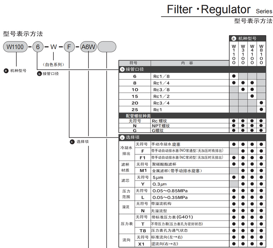 注5:帶自動冷凝水排出 “F1” 時,自動冷凝水排出的最低動作壓力為0.15 MPa。