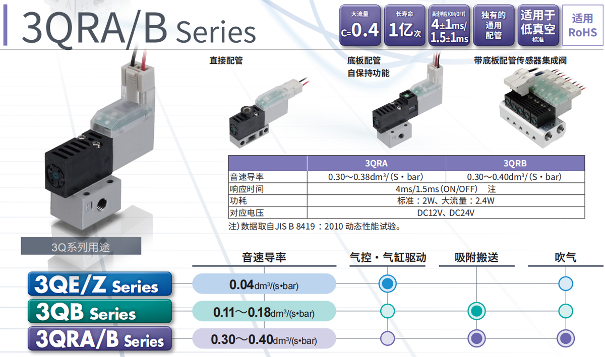 日本CKD直動式3通高頻電磁閥大流量 3QRB119-00-C2H-3 單體閥DC24V 2024/07/20 CKD氣動元件 CKD電磁閥 產品中心 方向控制閥 1053 0適用于小型 3通閥的所有用途氣控閥、驅動氣缸、驅動吸附、搬送、吹氣小型、大流量、低發熱? 直動式3通閥 3Q系列。微信客服