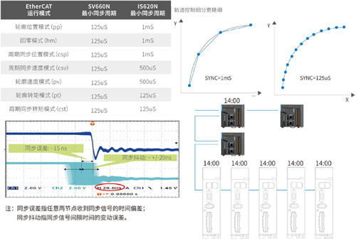 產品信息型號命名產品圖紙相關產品資料下載響應快響應帶寬可達3kHz,大大提高了伺服性能。定位精準搭配23bit絕對值編碼器,顯著提升設備重復定位精度和絕對定位精度。 同步性高EtherCAT通訊同步周期可支持125uS可實現300個節點120m距離,15ns同步誤差、±20ns同步抖動。同時位置環控制與同步信號同步,進一步提升多軸控制的同步性。 易安裝SV660與IS620體積相比大幅縮小30%。調試效率高Stune、Etune自動增益調整,大幅降低調試難度,提升調試效率。 功能安全STO可防止在故障狀態時造成觸電或機械傷害。 動態制動可防止電機快速旋轉造成的設備損失或人員傷害。 標簽:SV660匯川技術 上一篇: 多種流體用電磁閥 直動式2 3通電磁閥 FFB FFBM FFG FFGM系列 下一篇: CKD先導式3?5通電磁閥4GD/ER?M4GD/ER?MN4GD/ER